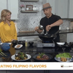 My experience kicked off to a rocky start—I was nearly 30 minutes late, thanks to a hold-up on the Red Line at the Wilson stop. However, Chef Gina didn’t miss a beat, immediately coming over to help me learn what the other students at our shared table were already practicing. In front of me, I found a wooden board, a sushi rolling mat, a small dish of water, plastic gloves, dried seaweed (or nori), and a plethora of fresh ingredients. Chef Gina instructed me to put on my gloves and get ready to dip them into the water intermittently, in the hopes of avoiding sticky fingers from the sushi rice. One guest asked if this rice is interchangeable with jasmine rice, and the chef replied that it isn’t—jasmine rice won’t stick together adequately to keep the roll in place.